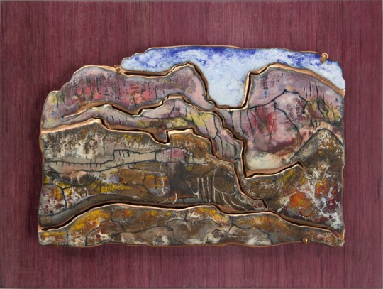 ZoomDetails GRAND CANYONWALLBy MarkOJune 13, 2015GRAND CANYON Copper, Enamel, Purple Heart Wood 7 3/4″ x 5 3/4″ 2010