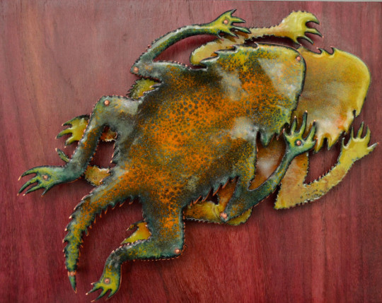 ZoomDetails THE VERY HORNY TOADSWALLBy MarkOJune 1, 2015THE VERY HORNY TOADS Copper, Enamel, Purple Heart Wood 8″ x 12″ 2012
